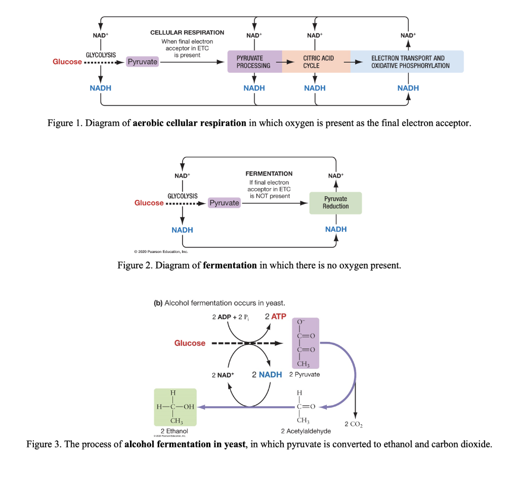 Aerobic metabolism results in a much higher yield of these energy carrying molecules due to the fact that it can use oxygen as a final electron acceptor in the electron transport chain. During this process oxidation energy is captured in the form of adenosine triphosphate ATP molecules. Pyruvate the end product of glycolysis serves as an electron acceptor for oxidizing NADH back to NAD which can then be reused in glycolysis.